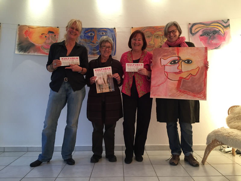 Irene Brey-Tafelmayer, Kunsttherapeutin, A.K.T. und Sylvia Regelin unterstützen die Ausstellung.